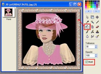 les outils de droite cocher motif /tolérence 30/opacité 100 9)Avec