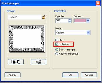 un encadrement largeur 40 couleur rose (ici) 17)Sélectionner